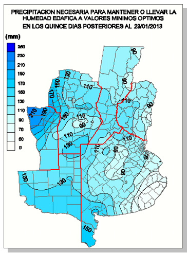 El mapa es elocuente por sí mismo y puede observarse que hay montos por encima de 100 mm. que serían alcanzados en muy bajas condiciones de probabilidad. Sin dudas habrá que seguir de cerca este período crítico para la producción agrícola nacional.