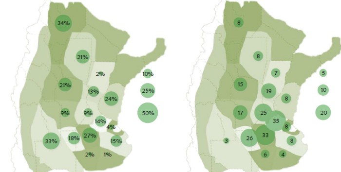 Por otro lado, en la zona NOA, las escasísimas lluvias de noviembre y diciembre, sumadas a perfiles secos, permitieron una mínima implantación en fecha óptima. En ese marco, el grueso de las tareas de siembra de soja se concretó en enero con la llegada de las precipitaciones, que continúan siendo escasas. Los productores de la zona estiman que el área sembrada sufrirá pocos recortes, pero esperan reducciones en los rendimientos por retrasos en la implantación respecto de la fecha óptima.