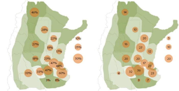 También se verificó que el 28% de la superficie dedicada a soja se implantó tarde, con un atraso promedio de 19 días. Además, el 6,7% de los lotes implantados con la oleaginosa se perdió por adversidades climáticas.