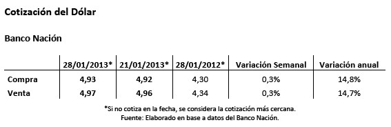 La cotización del Banco Nación de la divisa norteamericana se incrementó un centavo en la última semana, tanto para la compra como para la venta. En relación al año anterior, el valor de la moneda extranjera se incrementó un 14,8% para la compra y un 14,7% para la venta.