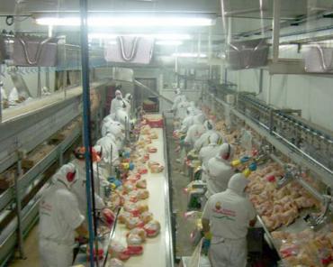 La China, en Concepción del Uruguay, que emplea a 1.800 trabajadores, es la planta de procesamiento de pollo más grande de Argentina y la que más pollos procesa por mes. Son 205.000 por día hábil y más de cuatro millones por mes