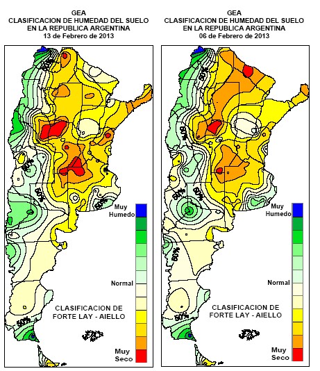También se destaca que los parámetros de gran escala comienzan a vislumbrar un cambio, por lo que podría esperarse una mejoría de la situación en todo el centro del país con el incremento de las precipitaciones en la segunda mitad del mes de febrero.