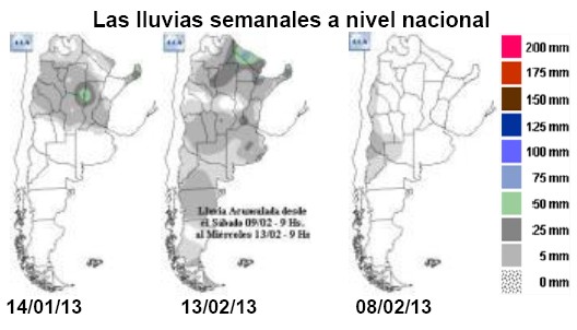 En el resto de la región las lluvias fueron débiles, escasas y dispersas, con ausencia total de precipitaciones en el noroeste de Buenos Aires y el extremo norte de GEA.