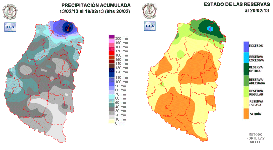 Sin embargo, la oferta de agua no fue igualmente generosa. Los máximos pluviales se ubicaron en el extremo norte provincial, disminuyendo el volumen de agua hacia el sur sudeste de la provincia. Gran parte del oeste de la provincia se benefició con la buena oferta de agua que se observó en SF, con lo cual se ha configurado una zona que quedó muy bien abastecida considerando el contexto previo. Claro está que la misma evaluación no puede hacerse parea el sudeste entrerriano, dado que 20 milímetros no fueron suficientes para satisfacer la demanda hídrica.