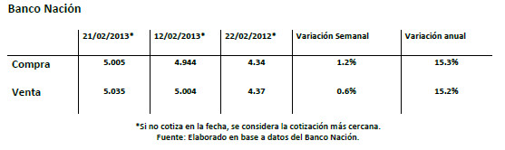 La cotización del Banco Nación del dólar estadounidense se incrementó un 1,2%, tanto para la compra y 0,6% para la venta. En relación al año anterior, el valor de la moneda extranjera se incrementó un 15,3% para la compra y un 15,2% para la venta.