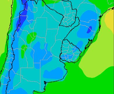 La mayor del Paraguay, la mayor parte del área agrícola de la Argentina y la mayor parte del Uruguay, registrará temperaturas mínimas entre 5 y 10ºC.