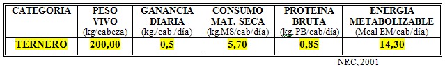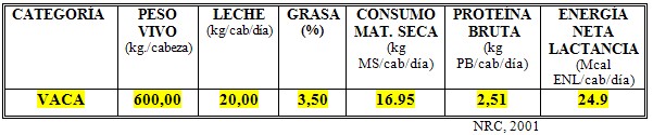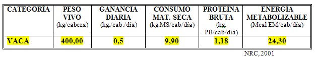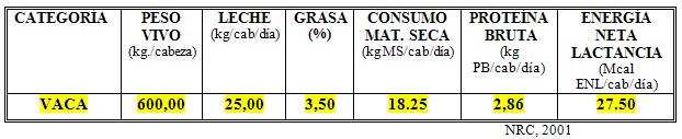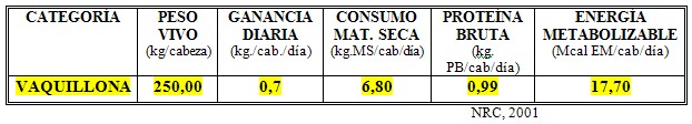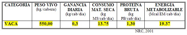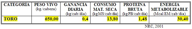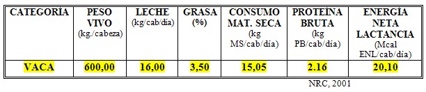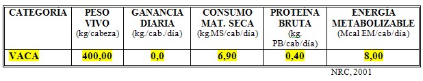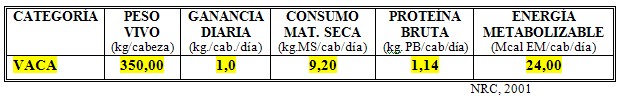 • Grano de cereal (cualquiera): ±6 kg tal cual/cab/día