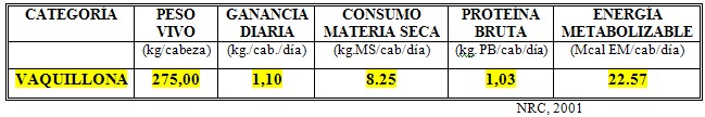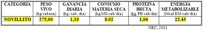 • Costo de alimentación por día: ±2.6 u$s/cabeza/día