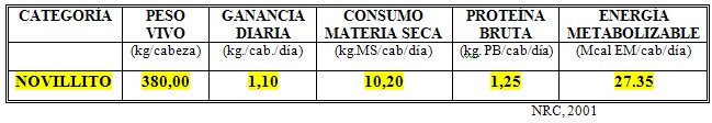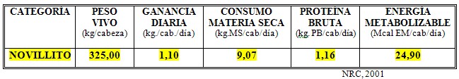 • Costo de alimentación por día: ±0.9 u$s/cabeza/día