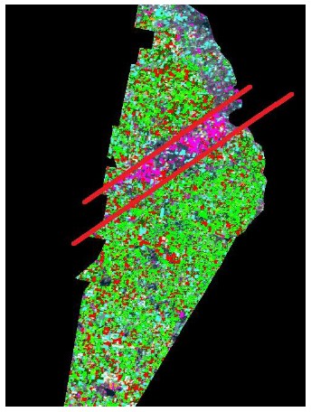 En Córdoba también hubo cambios. Se ajustaron en forma ascendente los rindes de la zona sur y tuvieron un considerable aumento las marcas de los departamentos de Unión y Marcos Juárez. Las mejores expectativas que se tiene en cuenta en el centro y norte de estos dos departamentos permitieron pasar de un rinde estimado de 30 qq/ha a 33,5 qq/ha como promedio para esta zona. Se están teniendo en cuenta una pérdida de superficie que oscila entre 30 y 40 mil hectáreas debido a las inundaciones y el granizo de diciembre. Se adjunta una imagen en la que se aprecian, enmarcados por una franja diagonal, lotes en coloraciones bordó para distinguir los cuadros que no presentaron características de crecimiento durante el mes de diciembre. Son alrededor de 63.000 ha afectadas.