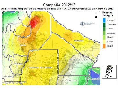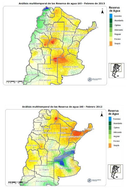 Reserva de agua en el suelo Febrero 2013 (Año Neutro) versus Febrero 2012 (Año Niña)