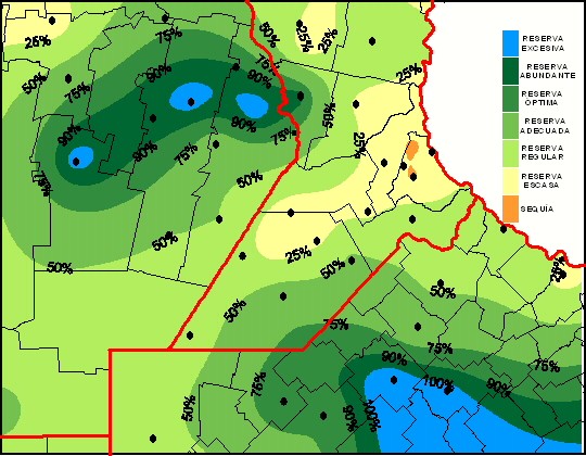 Reserva de agua útil para pradera permanente al 04/04/2013