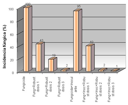 disminuyó el porcentaje de semillas enfermas en las muestras evaluadas.