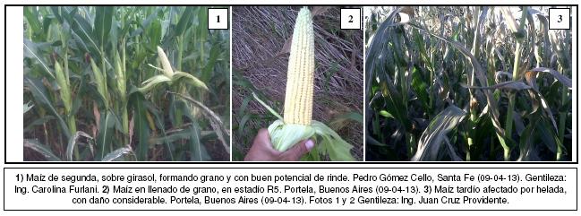 Por otra parte, se registra una gran preocupación en las zonas del Noreste de Buenos Aires, Centro-Este de Entre Ríos y el Sur de Santa Fe, por la helada ocurrida durante la madrugada del domingo pasado, la cual puede haber afectado el llenado en los cuadros de maíz sembrados en fechas tardías. Es importante destacar que estos aún transitan etapas de generación de rendimiento. Durante la próxima semana se podrán relevar pérdidas de rinde potencial, las cuales dependerán de la intensidad y de la duración de la helada en cada región, y a su vez del estadío en el cual se encontraba cada lote.