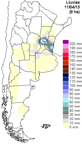 El saldo de estas precipitaciones se refleja en el mapa. Se destaca, la zona de influencia de la localidad de SF, donde los registros pluviales han alcanzado su máxima intensidad, decreciendo de manera ostensible hacia el norte y hacia el sur.