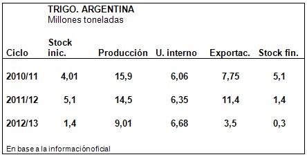 El cuadro que sigue muestra la tendencia a la baja en los stocks finales.