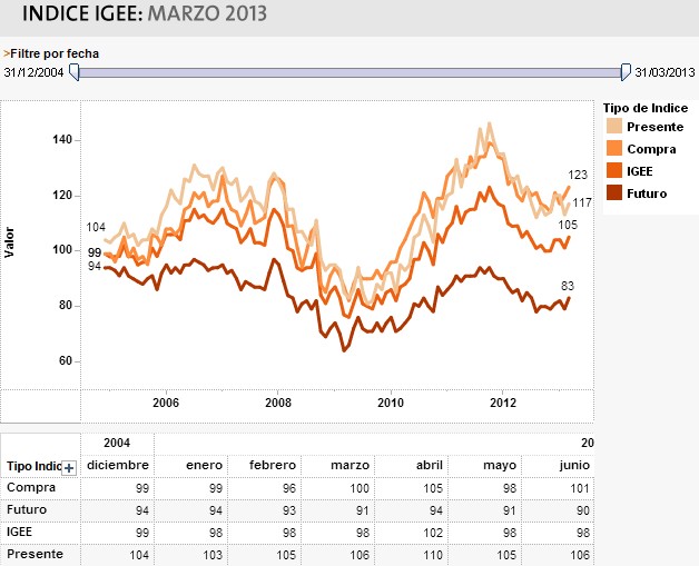 Con todo en marzo último el nivel general del IGEE estaba 15% por debajo del que alcanzó cuando Cristina Kirchner fue reelecta; cuatro por ciento por debajo del de marzo de 2012, y menos de un uno por ciento por encima de diciembre de 2012.