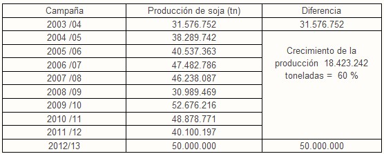 Cuadro 1: Aumento de producción de soja en los últimos 11 años