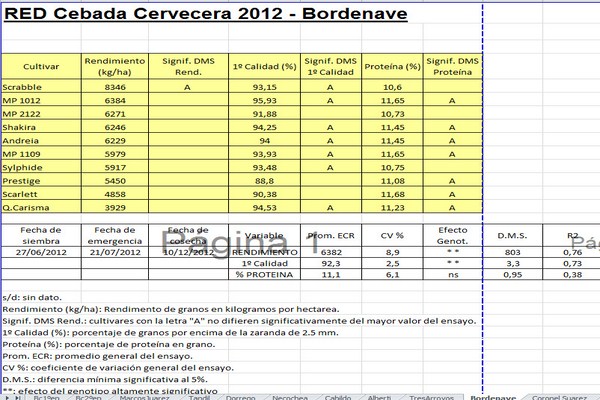 Datos de la campaña 2012 de la RED Nacional de Cebada Cervecera