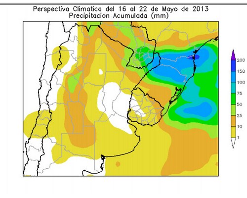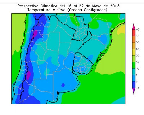 Perspectiva agroclimática del 16 al 22 de mayo de 2013: temperaturas de corte invernal y precipitaciones sobre el nordeste del área agrícola