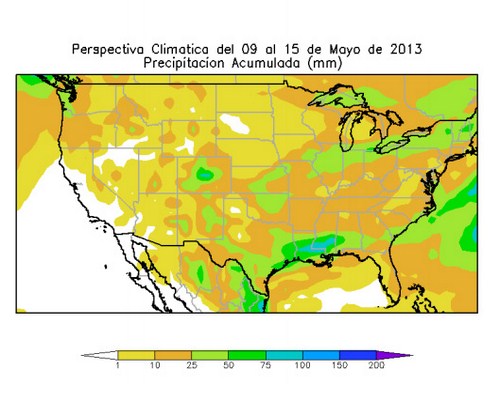 Perspectiva agroclimática para los EE.UU. del 9 al 15 de mayo de 2013: temperaturas elevadas y precipitaciones de variada intensidad