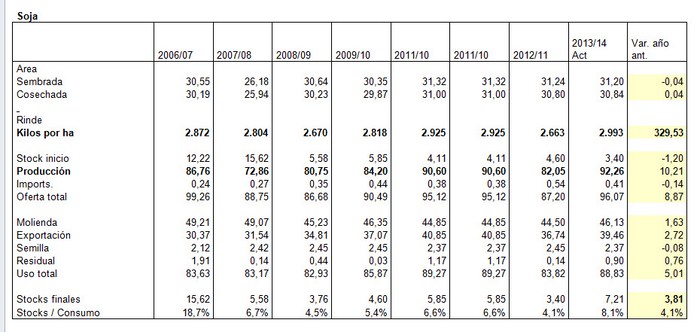 A su vez, las exportaciones crecerían en forma importante también, y los stocks pasarían de 20 a 50 M/Tns., lo cual no es tan malo como se esperaba, pero de todas formas es una suba muy fuerte.