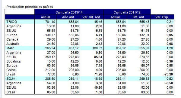 El Departamento de Agricultura de los Estados Unidos (USDA, por sus siglas en inglés), publicó el 10/5 su reporte mensual de Oferta y Demanda, en el que relevó una importante recuperación para la cosecha mundial de maíz y trigo del ciclo 2013/14, al tiempo que precisó que las estimaciones de stocks finales para la próxima campaña fueron superiores a lo esperado por los analistas.