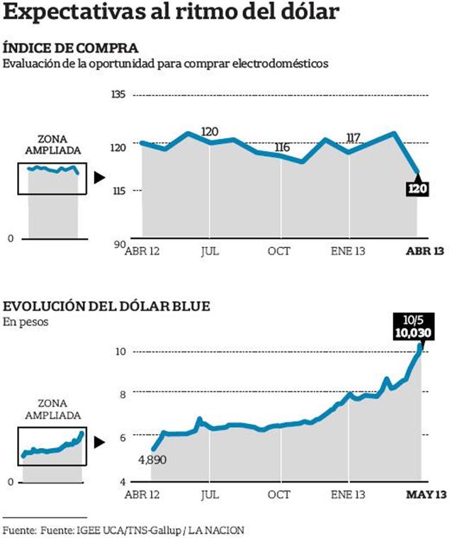 Las mediciones de la UCA y TNS-Gallup para el Índice General de Expectativas Económicas (IGEE) mostraron que la opinión generalizada es que en abril se alcanzó el peor momento en los últimos tres años para hacer esa clase de compras.