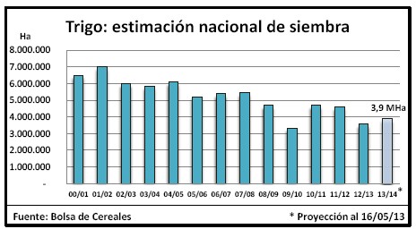 Comenzó la siembra de trigo de la campaña 2013/14 y desde la publicación de nuestro informe de Pre-Campaña a mediados abril pasado, se han registrado variaciones de área zonales. Estos movimientos se debieron a diferentes factores, entre los que podemos citar: disponibilidad hídrica, precio, coyuntura comercial, disponibilidad de semillas y margen bruto del cereal entre otros. En su conjunto todas estas variables hicieron que algunas zonas como NOA y NEA disminuyan aún más su intención de siembra. Simultáneamente, otras regiones de gran importancia por su aporte de superficie, aumentaron ligeramente el área destinada a trigo, compensando de esta forma los recortes previstos para las provincias del norte.
