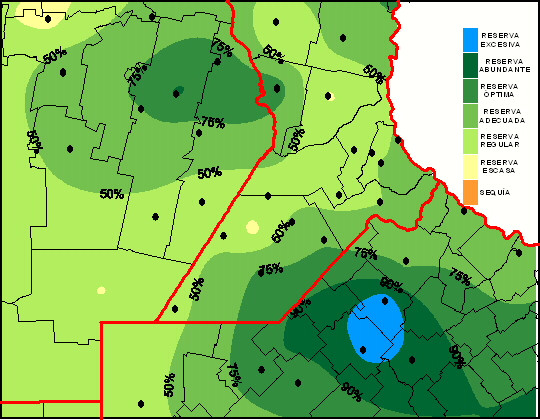 Reserva de agua útil para Pradera permanente al 15/05/2013