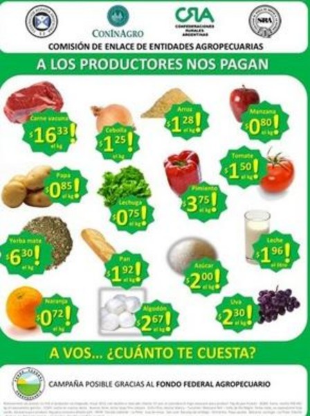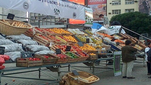 La Mesa de Enlace organizo una jornada de concientización en el Obelisco para mostrar a los consumidores la brecha entre el precio al que venden los productores y cómo llega a las góndolas de los supermercados y a las verdulería.