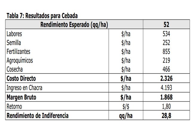 Se estimó el Ingreso en Chacra, los Costos Directos, el Margen bruto, el Rendimiento de indiferencia y el Retorno por peso gastado (Tabla 3)