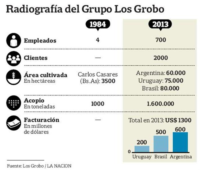 En Los Grobo creen que ser el grupo más grande no pasa por ser la empresa que más hectáreas siembra, sino por la que agrega más valor. De hecho, en la Argentina llegaron a sembrar más de 120.000 hectáreas alquiladas por su cuenta y el último ciclo estuvo en 60.000.