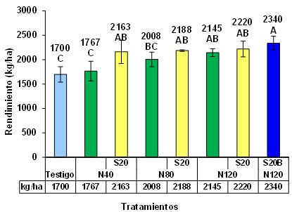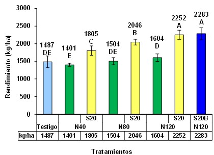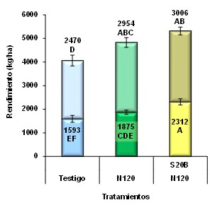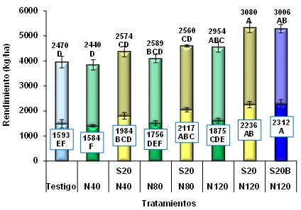 determinaron diferencias entre tratamientos a la partir de la dosis de N120 sin