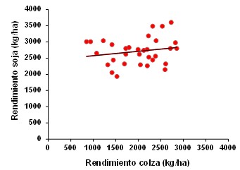 No se registró relación entre los rendimientos de soja y colza (Figura 10).