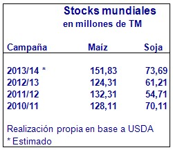 Como lo revela el cuadro, los stocks previstos para la nueva campaña siguen siendo muy elevados. Aunque en menor grado, también los de la soja.