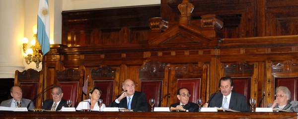 Ministros de la Corte Suprema de Justicia: Dr. Ricardo Luis Lorenzetti (Pte.); Dra. Elena I. Highton de Nolasco (Vice Pte.); Ministros: Dr. Carlos S. Fayt, Dr. Enrique Santiago Petracchi, Dr. Juan Carlos Maqueda, Dr. E. Raul Zaffaronib y Dra. Carmen María Argibay