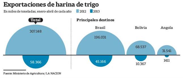Para este año, con una cosecha de trigo que en 2012 fue de 9 millones de toneladas, un 38% menos que la campaña anterior, Moreno ordenó un recorte del 70% de las exportaciones de harina de trigo. Así, sólo habilitó la venta de 300.000 toneladas, divididas en tres cupos.