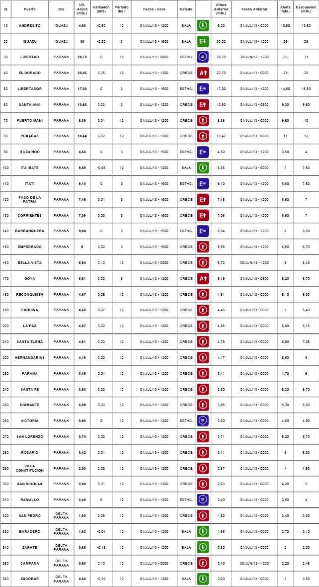 Registro altura de los Ríos