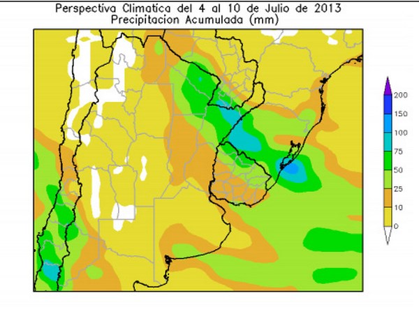 Perspectiva agroclimática del 4 al 10 de julio de 2013: fuerte oscilación térmica y precipitaciones sobre el nordeste del área agrícola