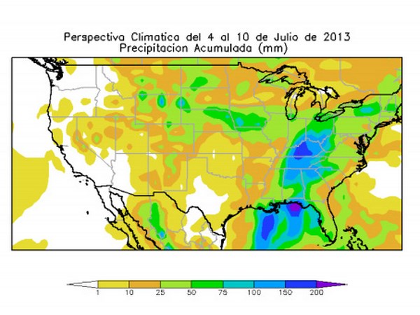 Perspectiva agroclimática para los EE.UU. del 4 al 10 de julio de 2013: calor y lluvias localizadas