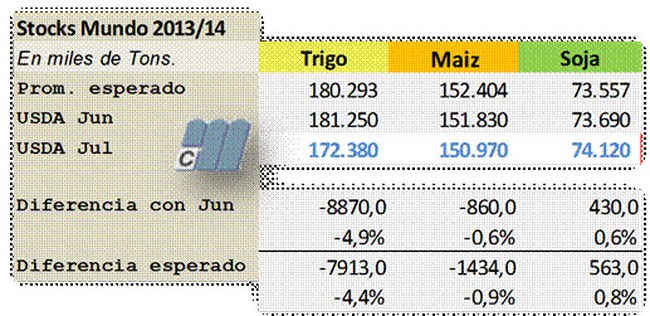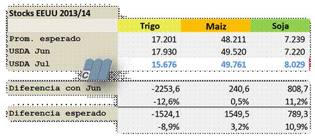 En cuanto a la campaña 2013/2014, y tras el informe de siembra difundido el 28 de junio pasado, la atención estuvo puesta sobre los rindes de tendencia que fijaron los técnicos del USDA y sobre los respectivos volúmenes de cosecha.