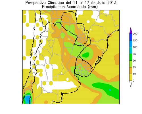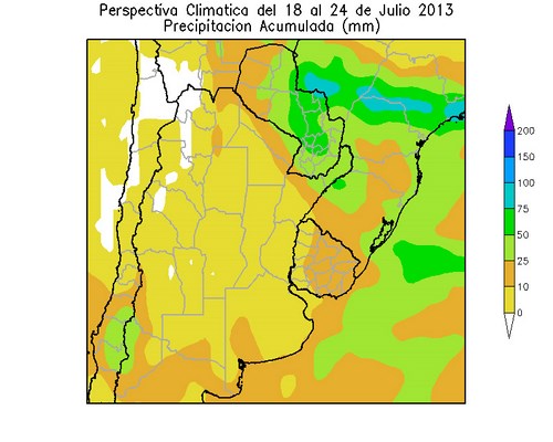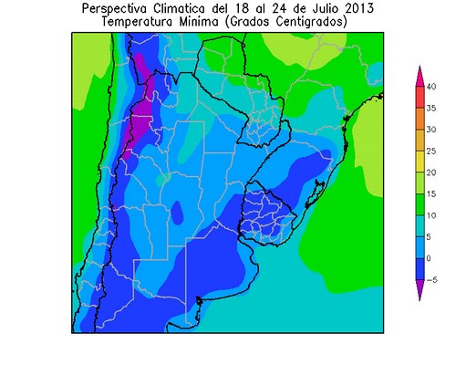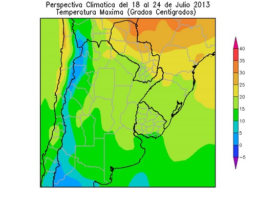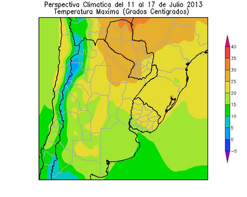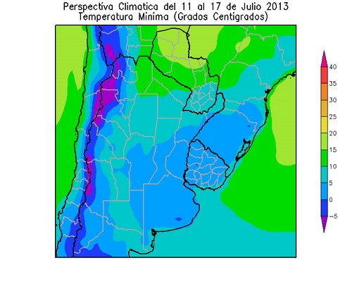 Los vientos del nordeste, que acompañarán al frente cálido, elevarán la temperatura por encima de lo normal en la mayor parte del área agrícola. A partir del 14 de Julio, ingresará al área agrícola una vigorosa masa de aire polar, provocando un marcado descenso térmico, con riesgo heladas en parte del área agrícola.