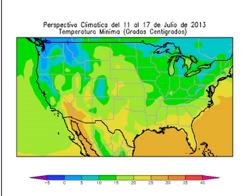 Perspectiva agroclimática para los EE.UU. del 11 al 18 de julio de 2013: calor y lluvias localizadas