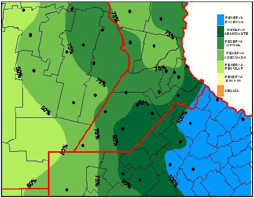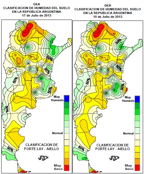 Reserva de agua útil para Trigo al 17/07/2013