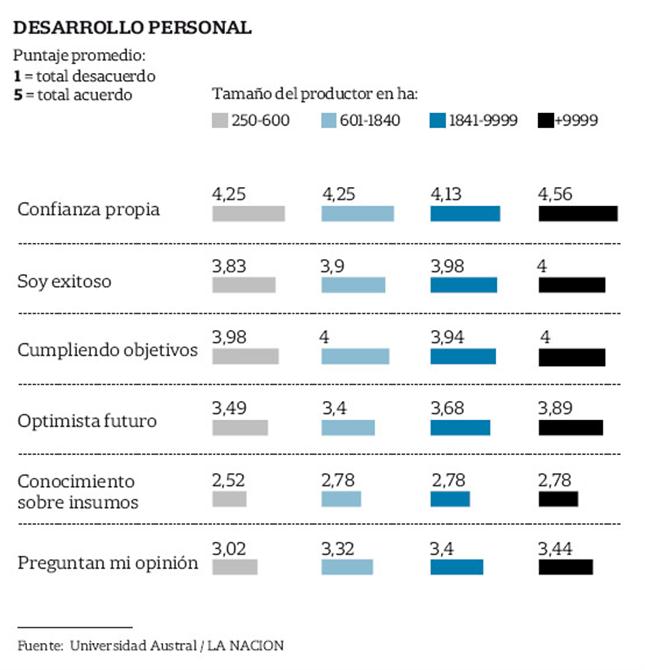 Por último, la encuesta sigue revalidando la alta estima personal y los altos puntajes en confianza que se tienen los productores. Características que parecen esenciales para "sobrevivir al entorno".