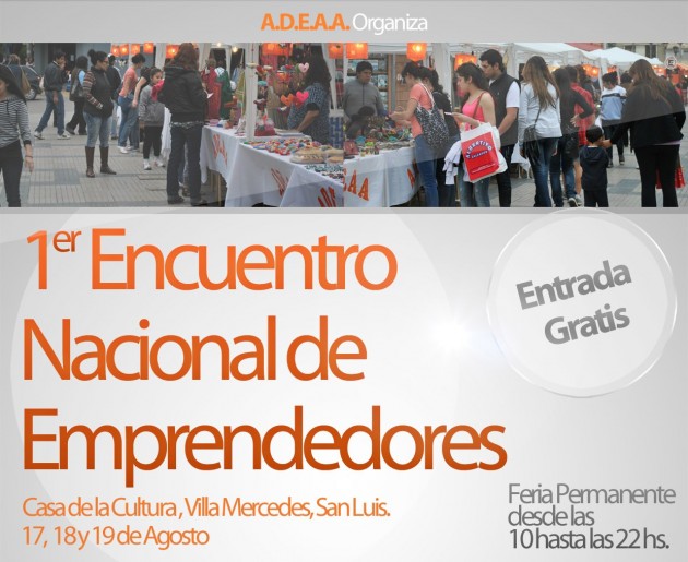 Desde el 17 al 19 de agosto se realizará el 1º Encuentro Nacional de Emprendedores en Villa Mercedes, San Luis, el cual contará con espacios de exposición regionales. Participarán emprendedores de distintos puntos del país.