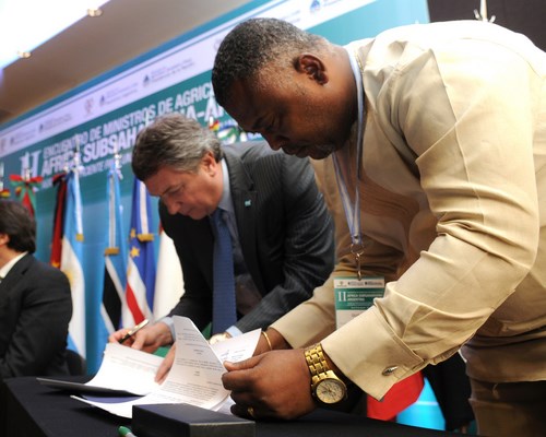 Asimismo, el titular de la cartera agropecuaria, acompañado por el gobernador Gerardo Zamora, cuya provincia fue anfitriona del Encuentro, firmó una declaración conjunta con los representantes de los países de África Subsahariana, en donde se fijó el plan de acción para los próximos años y se sentaron las bases para la organización del tercer encuentro de Ministros.