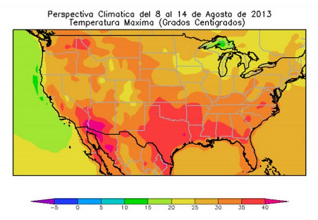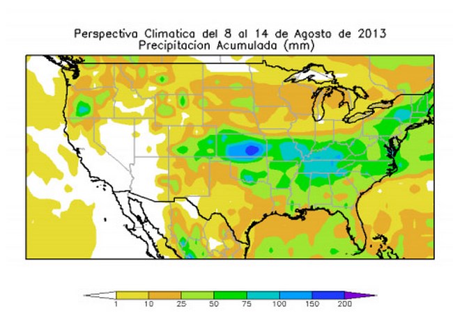 Perspectiva agroclimática para los EE.UU. del 8 al 14 de agosto de 2013: fuertes contrastes térmicos e hídricos entre el norte y el sur del área agrícola norteamericana