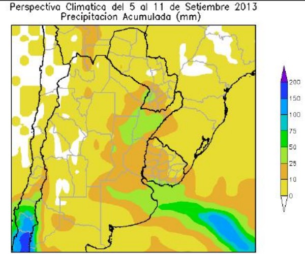 Perspectiva agroclimática del 5 al 11 de septiembre de 2013: ascenso térmico y precipitaciones sobre el este del área agrícola